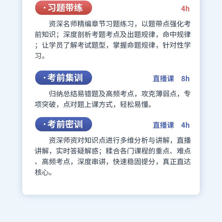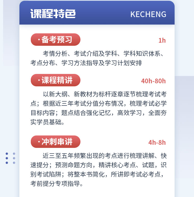 多年授课经验,了解考生的学习过程痛点,直击要害。案例教学深入归纳总结,独特的“系统性学习方法”,受到学员高度评价。授课深入浅出,幽默生动,大大提升考生的应试能力。