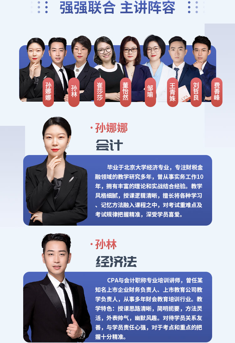 注册会计师、企业培训师、人力资源管理师。行走的应试宝典,授课风格幽默灵活,知识面较广,课程很落地。擅长结合案例及利用考试规律幽默巧妙的解读枯燥的知识点。